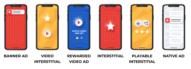 Visual depiction of different types of mobile gaming advert format